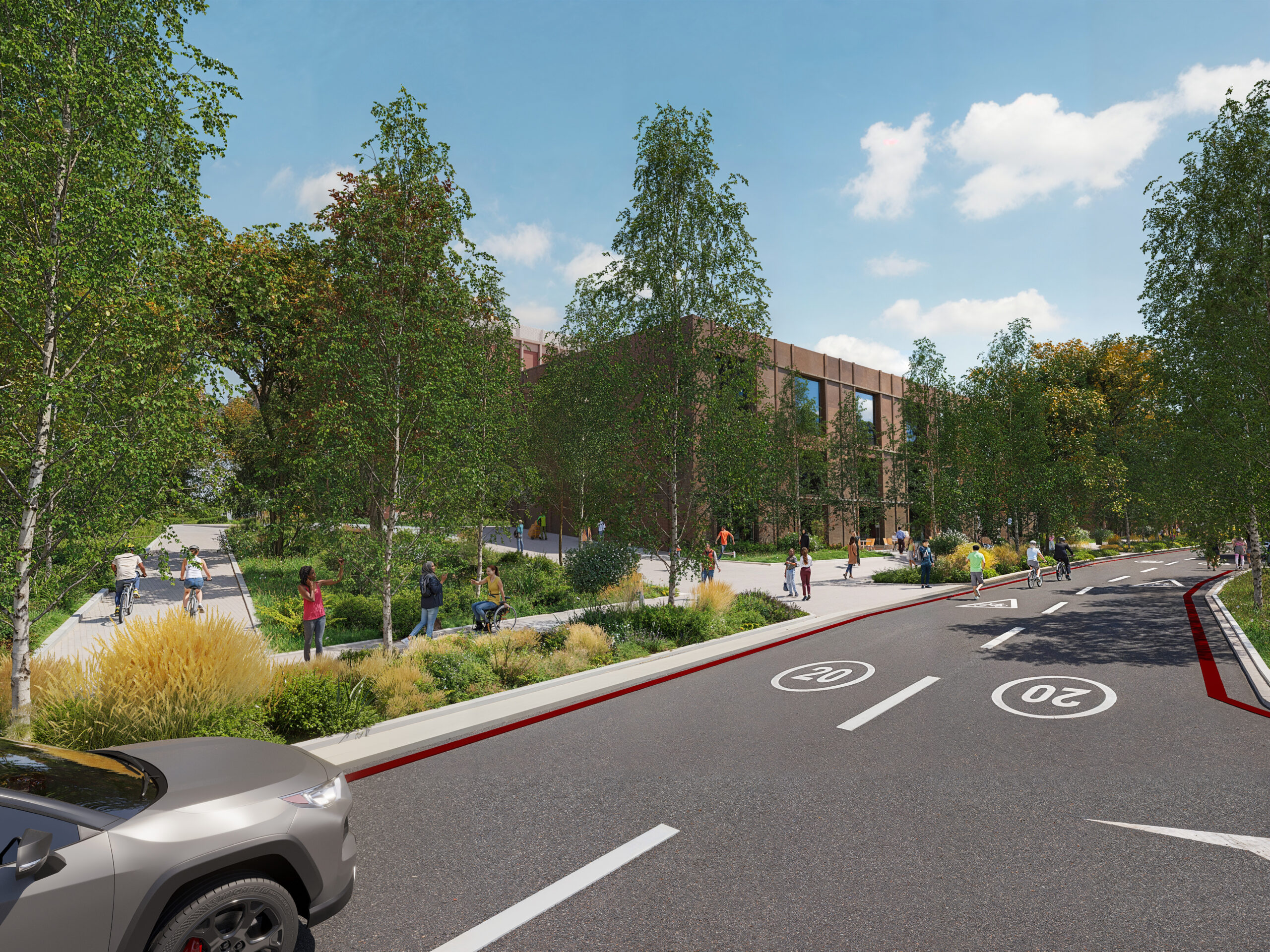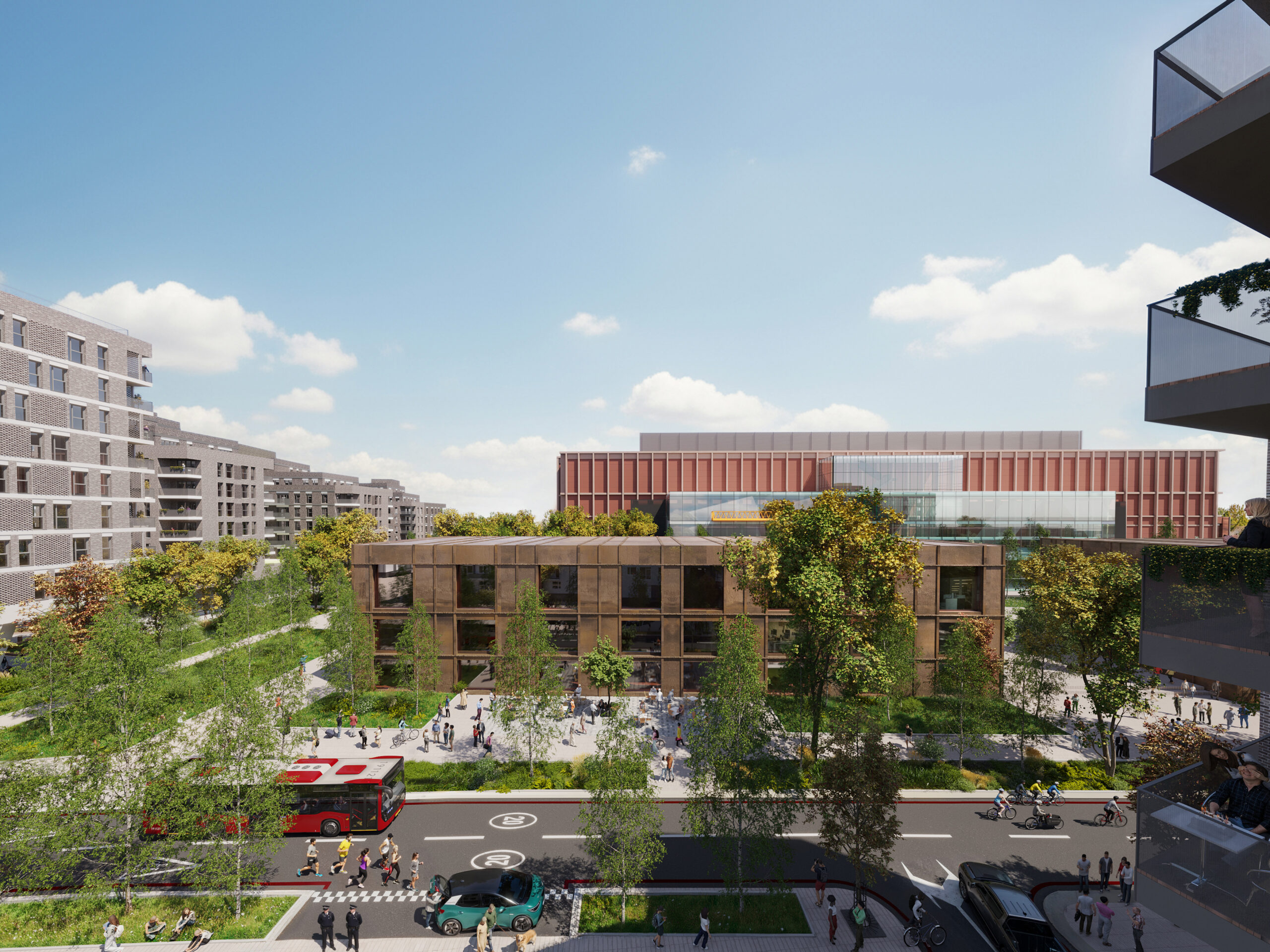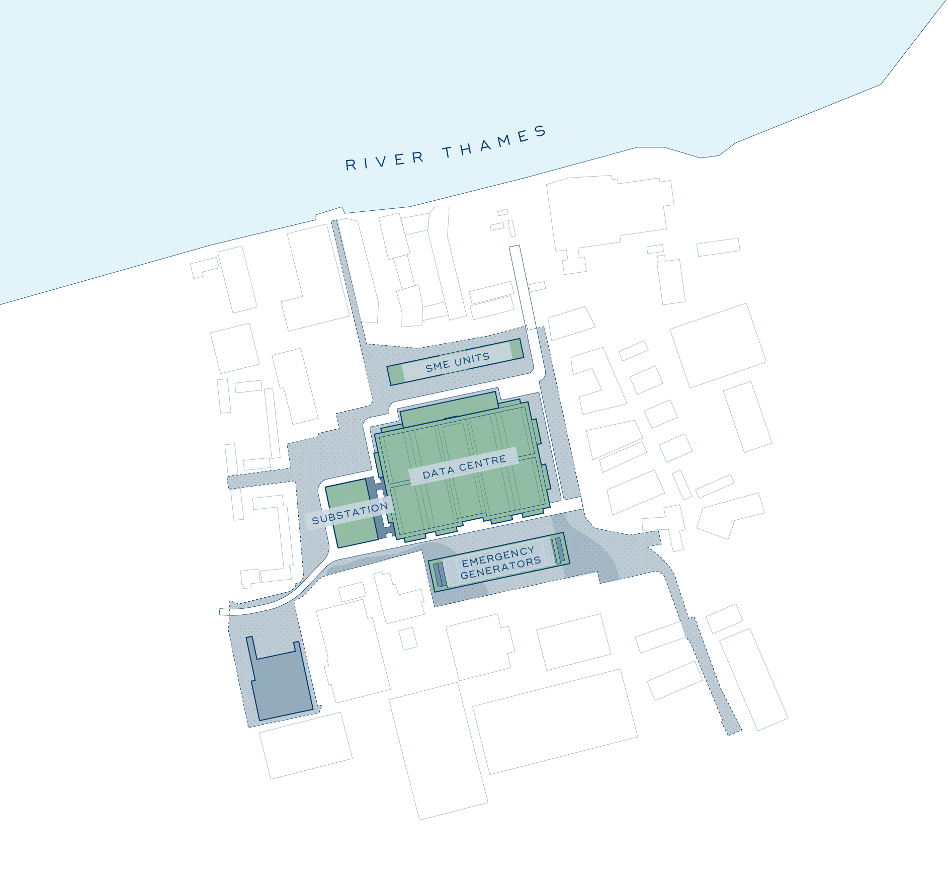 Our site plan reflects the Royal Borough of Greenwich’s vision for Charlton Riverside: a living, working neighbourhood connected to the river. Rich landscaping, public routes through to the Thames Path, and dedicated SME space for local businesses sit alongside nationally strategic digital infrastructure.